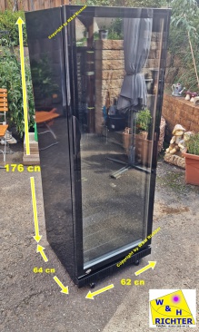 Daten : 2 Meter Hoch , ca. 40 Kg schwer , Einstellbar auf 2 bis 8 Grad - Kühlschrank ist abschliessbar !