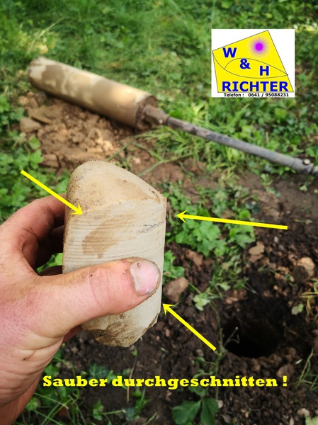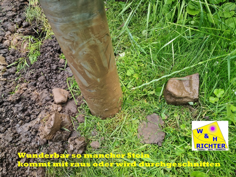Wenn es nicht weiter geht und ein Stein Sie am weiterbohren hindert , gibt es Chancen mit dem Steinschneider und Wasserzugabe den Stein abzuschneider und weiter zu bohren ! , siehe Bilder .