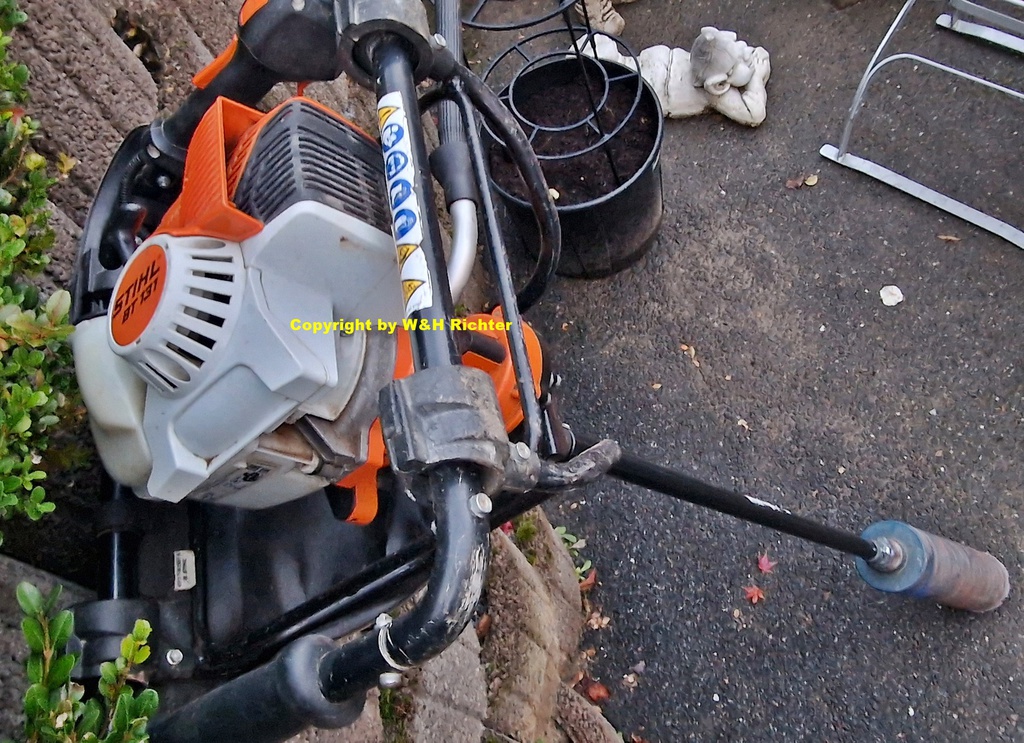 Betrieb 1:50 Gemisch , Gestänge bis ca. 8 Meter und der Steinschneidkopf .