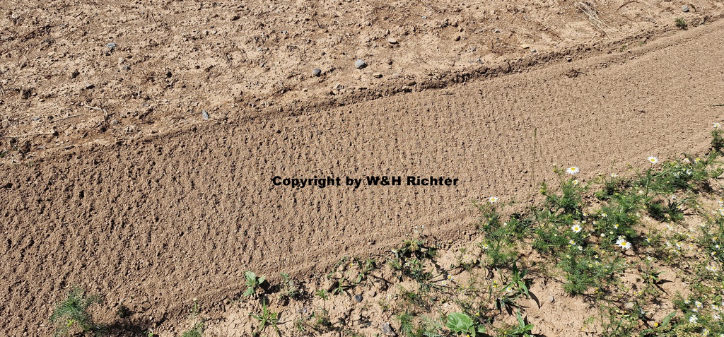 Verwenden Sie dass Gerät bei normaler Bodenfeuchtigkeit - zu Nass hat ma nur Matsch und alles setzt sich zu , zu trocken quasi 40 Grad springt Sie da alles Stein hart . Siehe Video unten normle Feuchtigkeit !!!