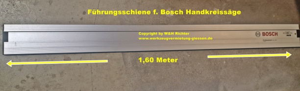Mieten Sie zu der Handkreissäge bei Bedarf , die 160 cn lange Aluminium Führungsschiene von Bosch .